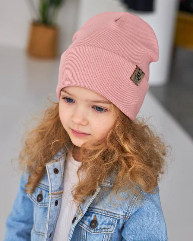 Рожева шапка з відворотом для дівчинки на весну-осінь