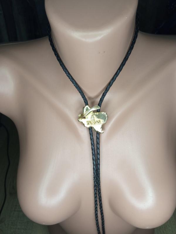 краватка Боло на шкіряний мотузці під золото штат Техас стан новий