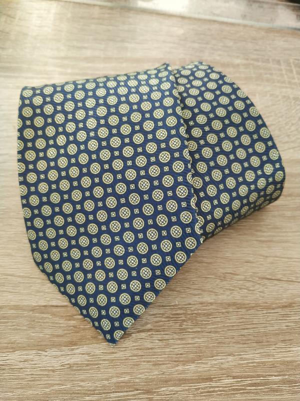 Широкий класичний краватку. Ширина 8.5 см в нижній частині. Довжина 145 див. Колір темно-синій, жовто-золотий орнамент. Дивіться також інші мої оголошення.