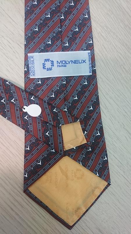Краватка з 100% шовку від французького бренду Molyneux (дизайнер Едвард Моліне). Розміри: довжина 135 див, ширина 9,5 див. Країна-виробник: Франція. Оплата: 100% передоплата на карту Приват або Монобанк. Доставка: відправлю Укрпоштою, Новою поштою або Джастін протягом 2 днів після оплати (за рахунок одержувача).