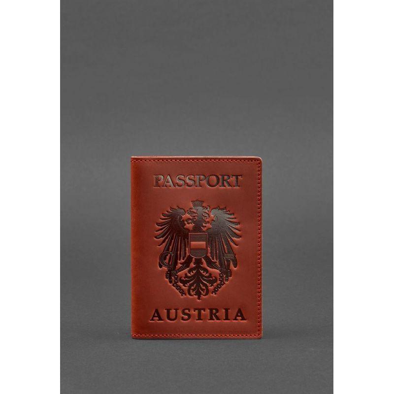 Шкіряна обкладинка для паспорта з австрійським гербом корал