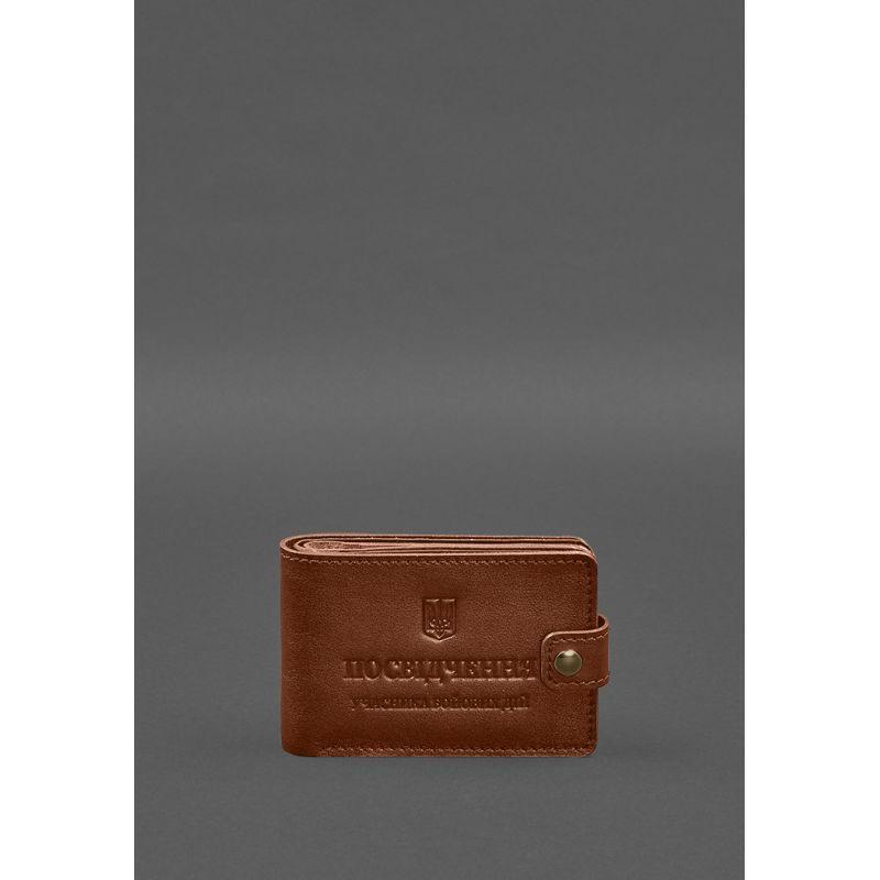 Шкіряна обкладинка-портмоне для посвідчення учасника бойових дій (убд) світло-коричнева bn...