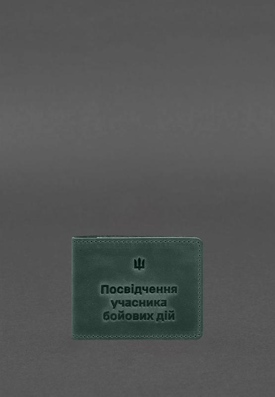 Шкіряна обкладинка для посвідчення учасника бойових дій (убд) 2.2 зелена crazy horse - bn-...