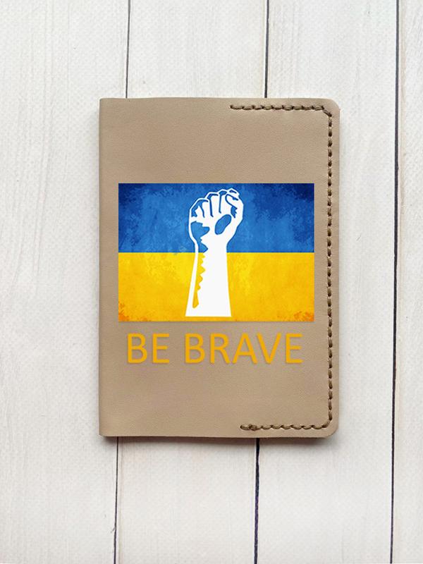 Шкіряна обкладинка на паспорт книжку :: бежева (принт 42)