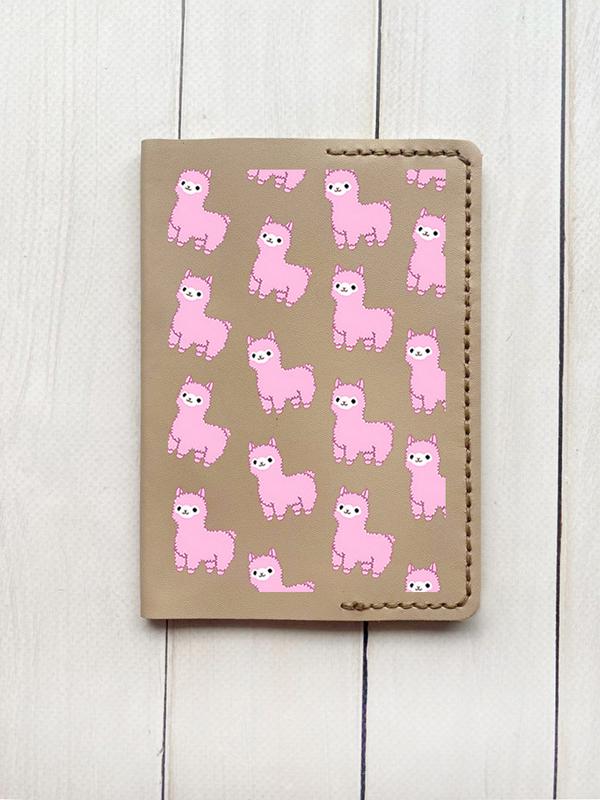 Шкіряна обкладинка на паспорт книжку :: бежева (принт 101)