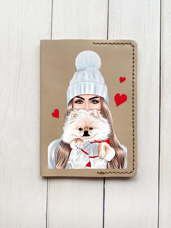 Шкіряна обкладинка на паспорт книжку :: бежева (принт 142)