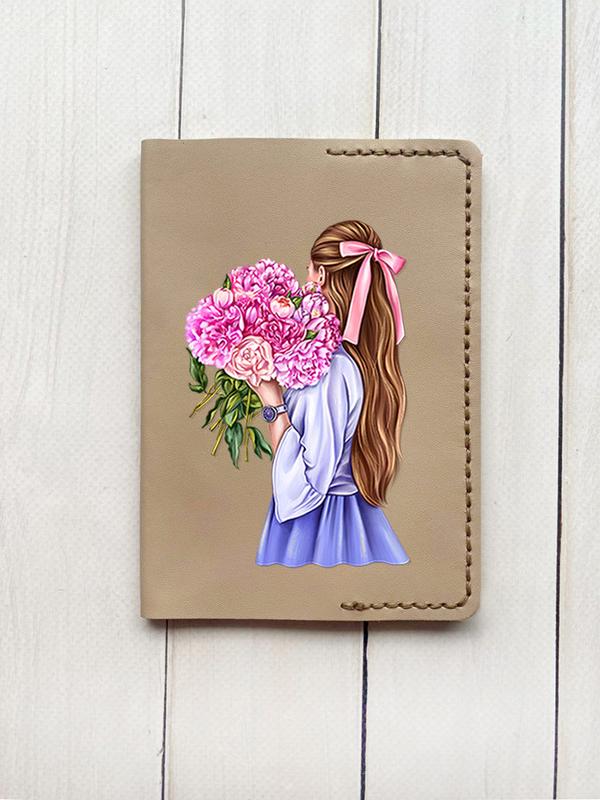 Кожаная обложка на паспорт книжку :: бежевая (принт 11)