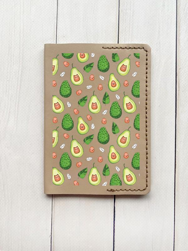 Шкіряна обкладинка на паспорт книжку :: бежева (принт 301)