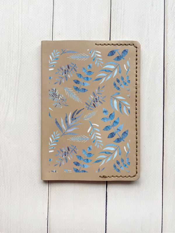 Шкіряна обкладинка на паспорт книжку :: бежева (принт 276)
