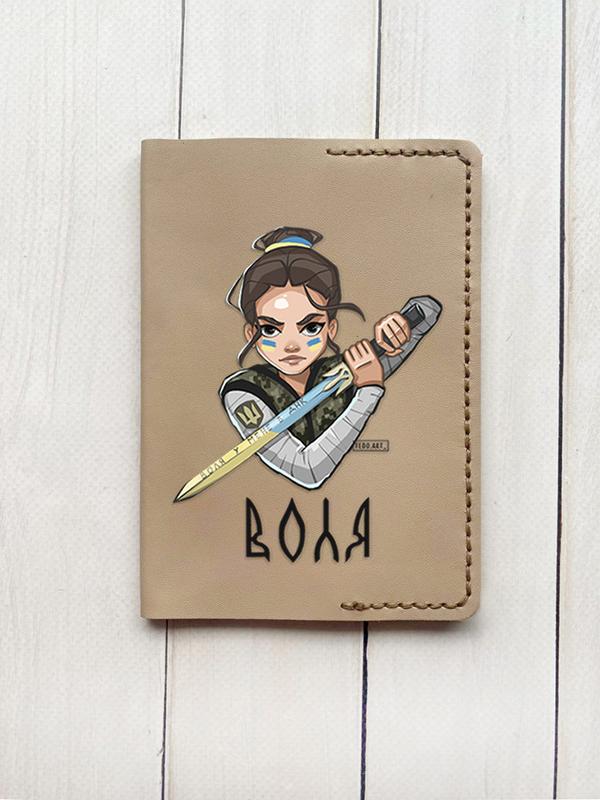 Шкіряна обкладинка на паспорт книжку :: бежева (принт 169)