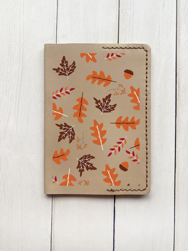 Шкіряна обкладинка на паспорт книжку :: бежева (принт 107)