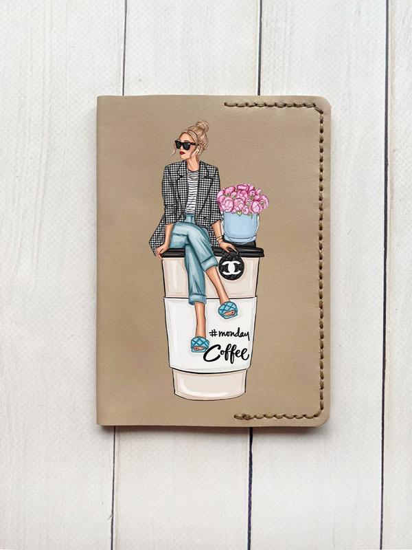 Кожаная обложка ручной работы. Приятная на ощупь. Качественный материал. Принт выполнен УФ-красками: не выгорает на солнце, стойкий к истиранию. Ваш паспорт надёжно защищен. - Материал: натуральная кожа. - Цвет: бежевый. - Размер: 200х138 мм. - Сделано в Украине.