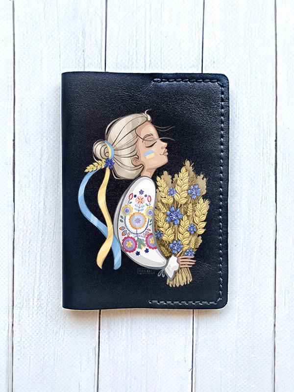 Шкіряна обкладинка ручної роботи. Приємна на дотик. Якісний матеріал. Принт виконаний УФ-фарбами: не вигорає на сонці, стійки до стирання. Ваш паспорт надійно захищений. - Матеріал: натуральна шкіра. - Колір: чорний. - Розмір: 200х138 мм. - Зроблено в Україні.