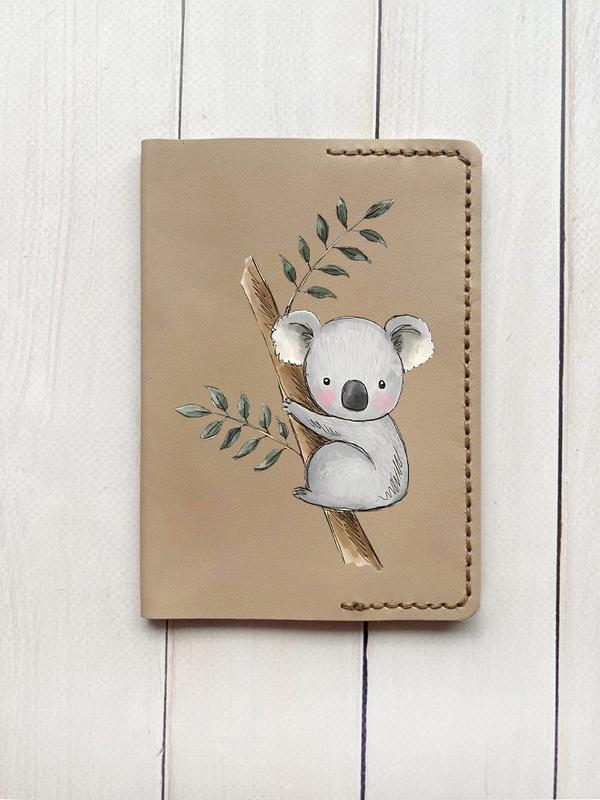Шкіряна обкладинка на паспорт книжку :: бежева (принт 132)