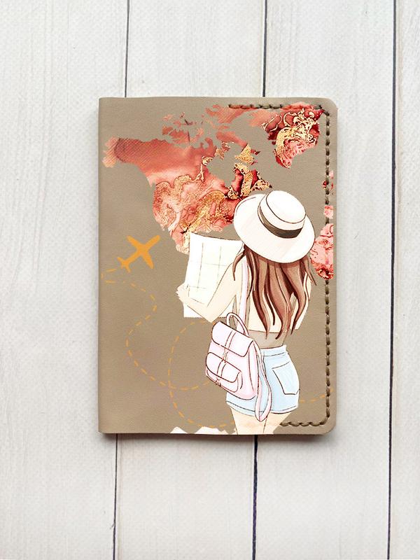 Шкіряна обкладинка на паспорт книжку :: бежева (принт 001)