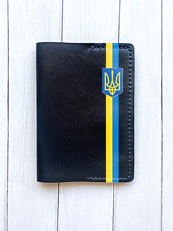 Шкіряна обкладинка ручної роботи. Приємна на дотик. Якісний матеріал. Принт виконаний УФ-фарбами: не вигорає на сонці, стійки до стирання. Ваш паспорт надійно захищений. - Матеріал: натуральна шкіра. - Колір: чорний. - Розмір: 200х138 мм. - Зроблено в Україні.