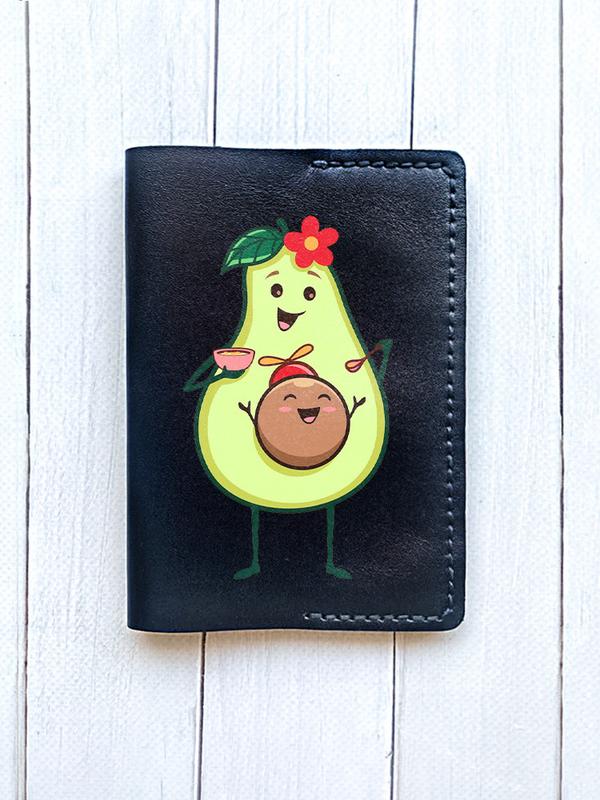 Шкіряна обкладинка на паспорт книжку :: чорна (принт 309)
