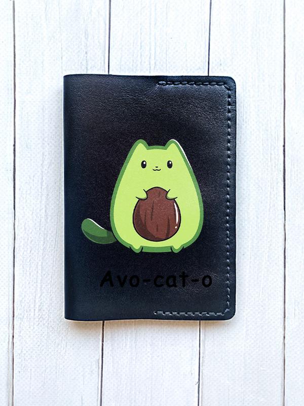 Шкіряна обкладинка на паспорт книжку :: чорна (принт 306)