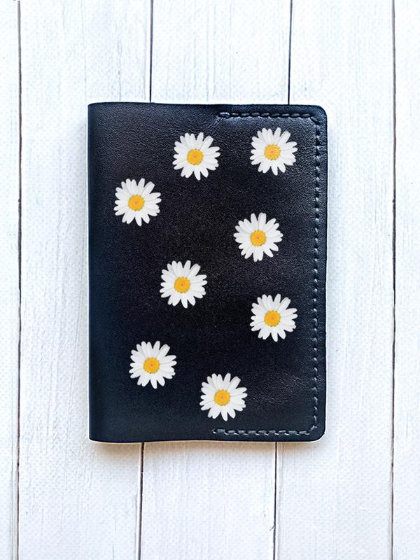 Шкіряна обкладинка на паспорт книжку :: чорна (принт 41)