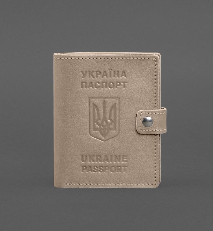 Шкіряна обкладинка-портмоне на паспорт із гербом української світло-бежева 25.1