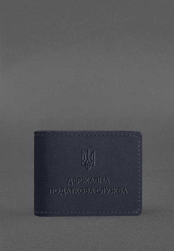 Шкіряна обкладинка на посвідчення державної податкової служби темно-синя crazy horse