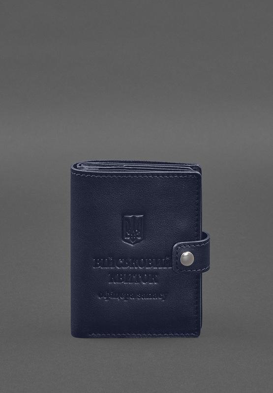 Шкіряна обкладинка-портмоне для військового квитка офіцера запасу (вузький документ) синій