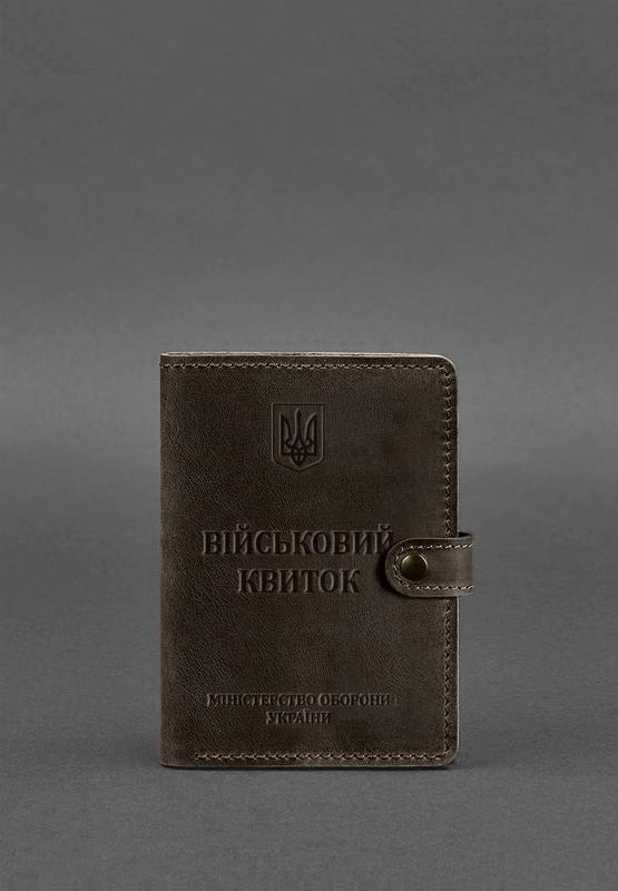 Шкіряна обкладинка-портмоне для військового квитка 15.0 темно-коричнева crazy horse