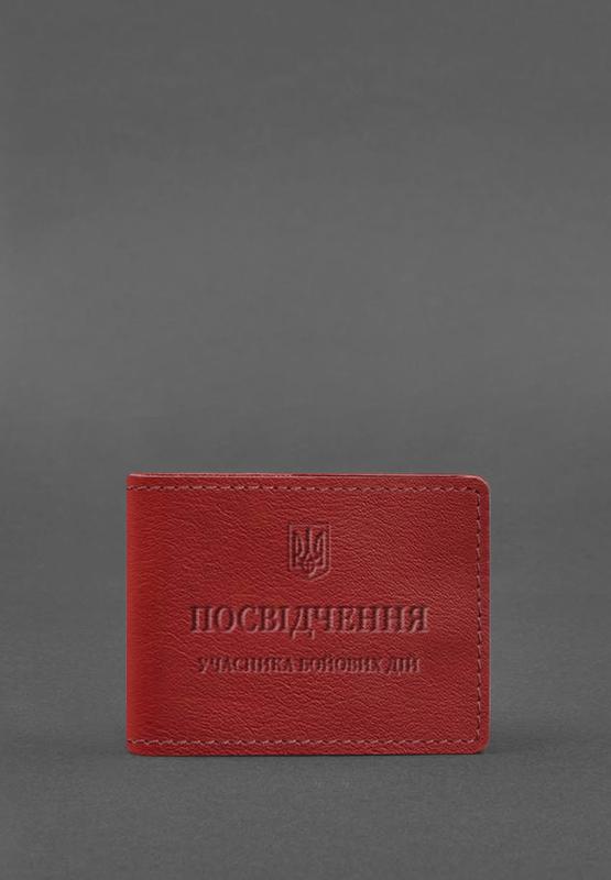 Шкіряна обкладинка для посвідчення учасника бойових дій (убд) червона
