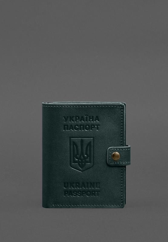 Шкіряна обкладинка-портмоне на паспорт з гербом україни 25.1 зелена