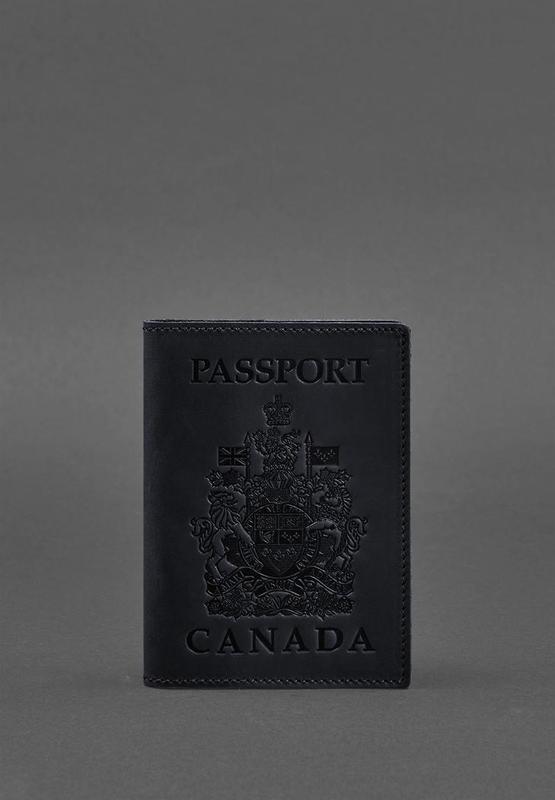 Шкіряна обкладинка для паспорта з канадським гербом темно-синя crazy horse