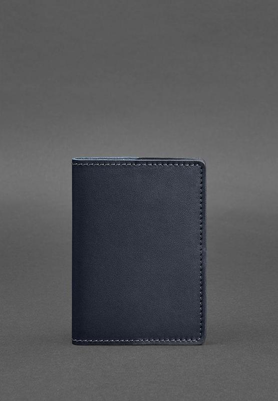 Шкіряна обкладинка для паспорта та військового квитка 1.3 темно-синя