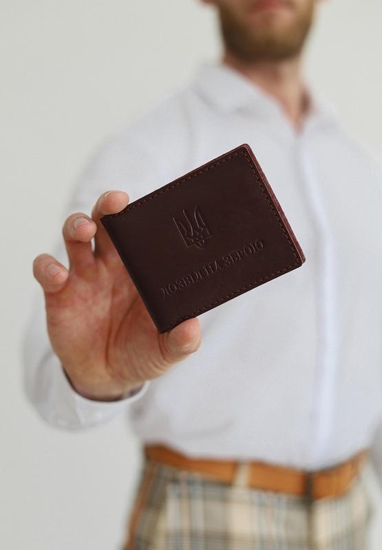 Шкіряна обкладинка для дозволу на зброю темно-коричнева