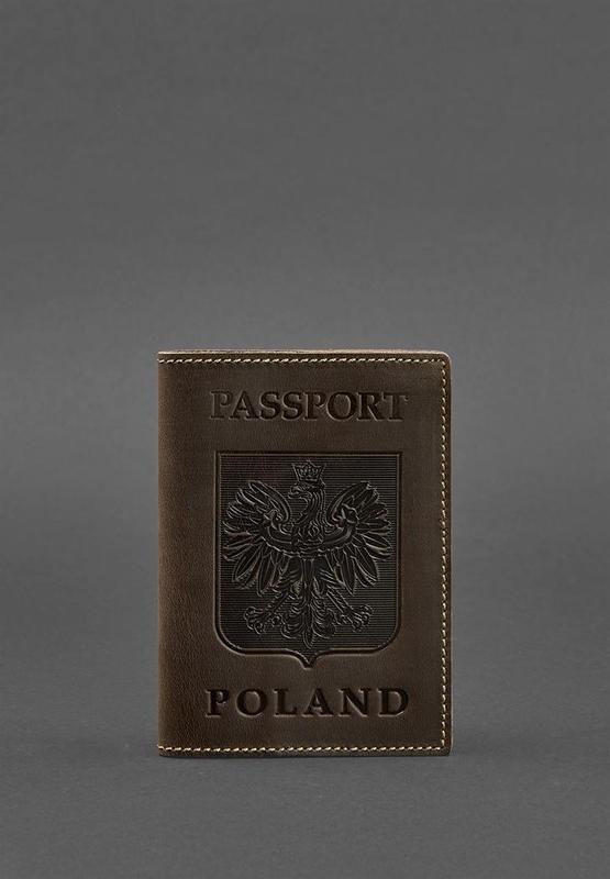 Шкіряна обкладинка для паспорта з польським гербом темно-коричнева crazy horse