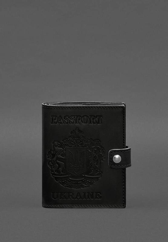 Шкіряна обкладинка-портмоне на паспорт з гербом україни 25.0 чорна crazy horse