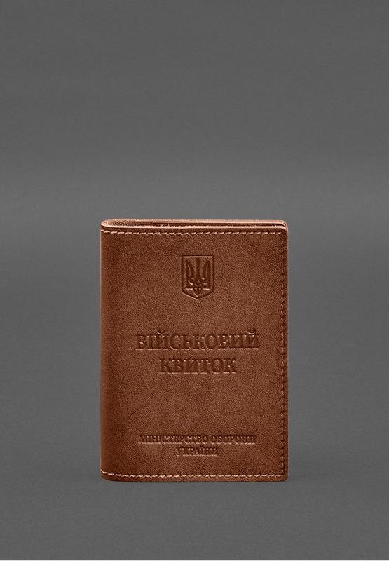 Шкіряна обкладинка для військового квитка з кишенями 7.2 світло-коричневий краст