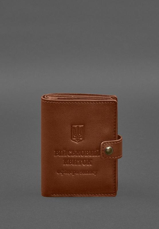 Шкіряна обкладинка-портмоне для військового квитка офіцера запасу (вузький документ) світл...