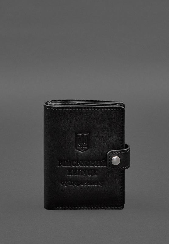 Шкіряна обкладинка-портмоне для військового квитка офіцера запасу (вузький документ) чорна