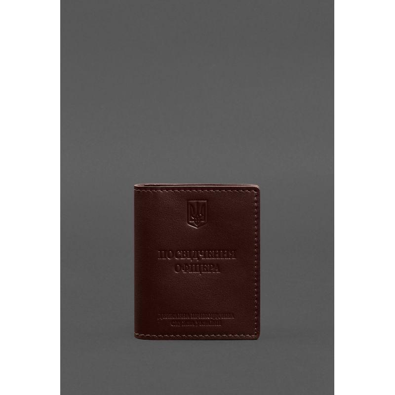 Кожаная обложка для удостоверения офицера дпсу (три кармана) бордовая