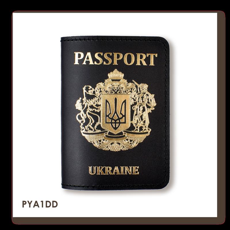 Обкладинка для паспорта passport з великим гербом (чорна, золоте тиснення)