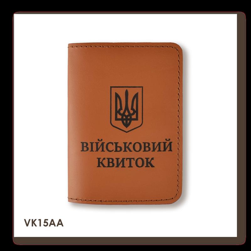 Обкладинка для військового квитка з гербом (теракотова, чорна тиснення)