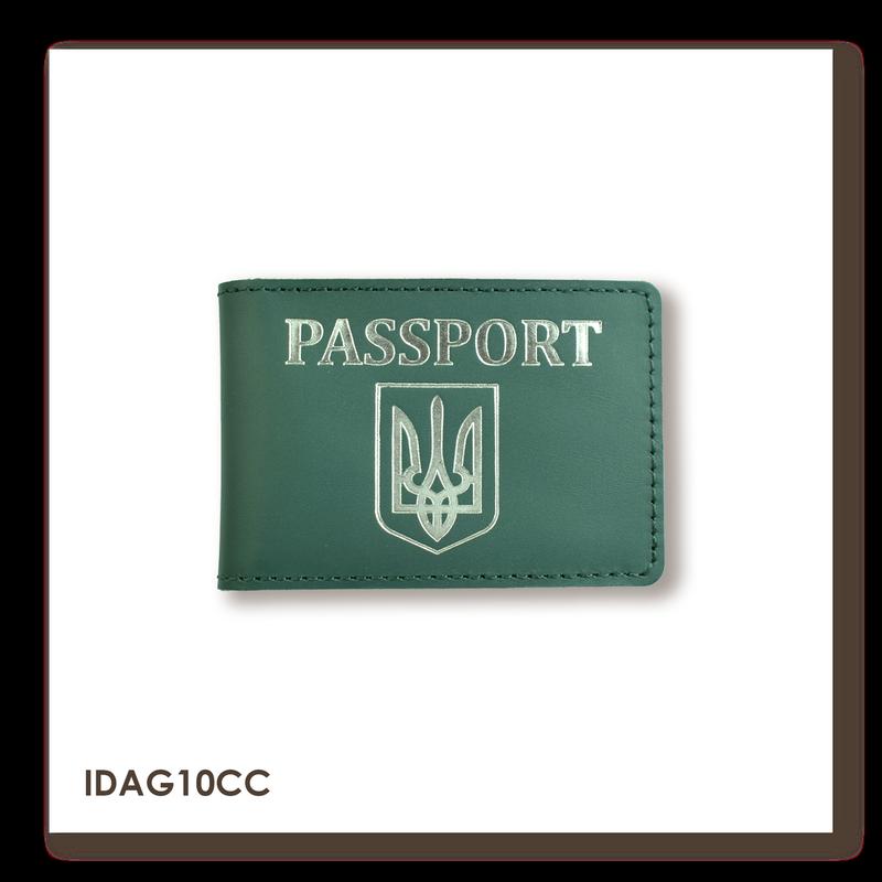 Обкладинка для id-картки passport з гербом (зелена, срібне тиснення)