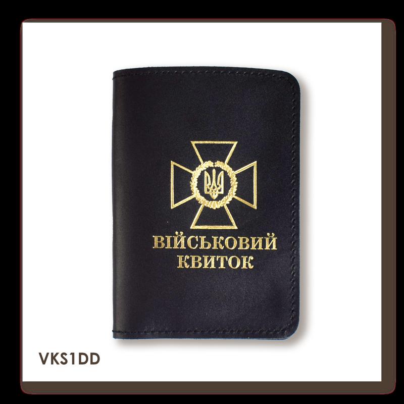 Обкладинка для військового квитка з емблемою дпсу (чорна, золоте тиснення)