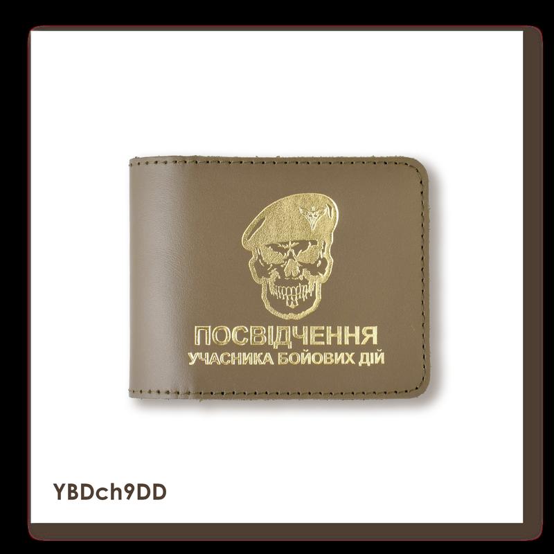 Обложка для удостоверения убд «череп дшв» (хаки, золотое тиснение)