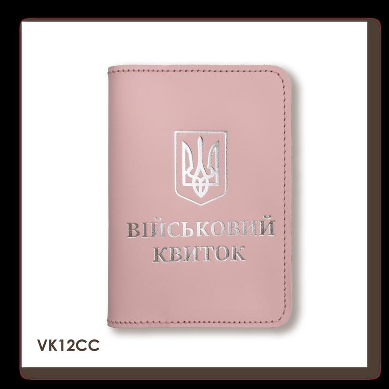 Обкладинка для військового квитка з гербом (рожева, срібне тиснення)