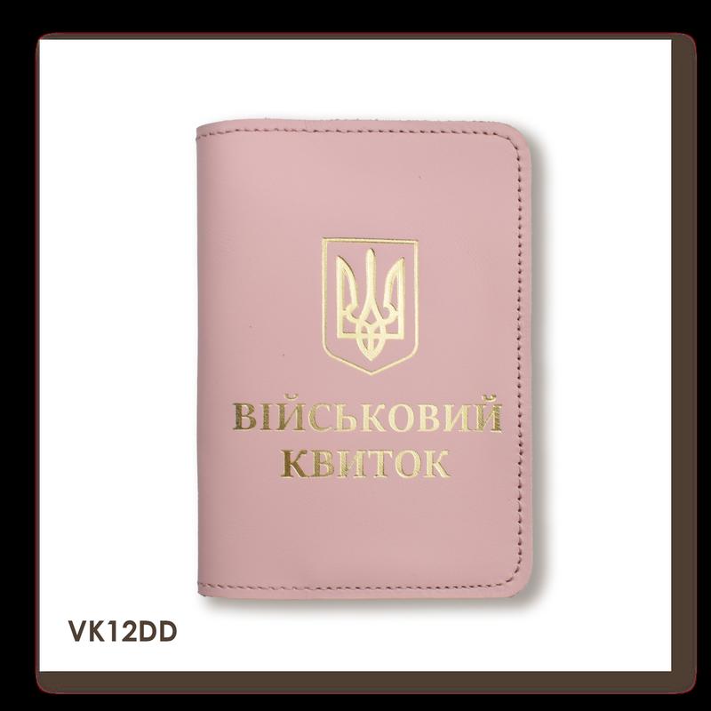 Обкладинка для військового квитка з гербом (рожева, золоте тиснення)