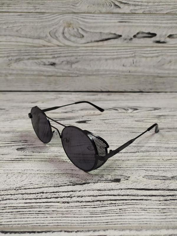 Сонцезахисні окуляри круглі чорні унісекс у металевій оправі