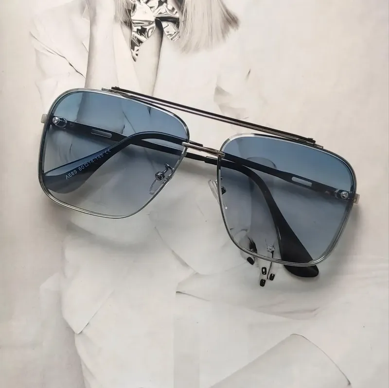 Квадратні окуляри авіатори Матеріал лінзи: полікарбонат Колір: Синє-бірюзовий Матеріал оправи: метал Ширина оправи: 14см Міст 1,3см Довжина дужки 14 см Висота оправи: 5,3 см Ширина лінзи 5,9 см Колір може трохи відрізнятися через колір екрану Сьогодні окуляри перестали бути простою медичною необхідністю, яка покращує зір і захищає очі від сонця. Цей аксесуар перетворився на модний тренд. Різноманітні оправи здатні доповнити практично будь-який стиль, надати йому особливість та індивідуальність.