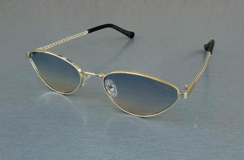 Жіночі сонцезахисні окуляри кішечки брендові , в золотий металевій оправі, лінзи з полікарбонату з дуже гарним градієнтом ступінь захисту UV 400