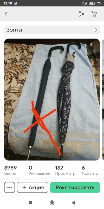 Дві парасольки-трості. Розміри чорного радіуса 56, висота 81.Другого радіус 60, висота 90.