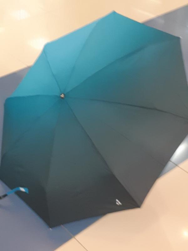 Парасолька з багатобарвним (від бірюзового до темно-зеленого) кольору компактна полегшена. Діаметр бані 94 см; кількість секцій -8; автоматичний механізм гасіння бані; габаритні розміри у складеному стані: діаметр 7 см, довжина 23 см; висота у розкладеному положенні – 55 см; діаметр несучого стрижня біля основи ручки – 9,1 мм; діаметр труби біля бані – 12,5 мм. Матеріал спиць - дюралюміній + карбон. Вага парасольки 0,34 кг. Ручка парасольки конічна чорного кольору, матеріал ручки дозволяє стійко утримувати парасольку в руці під час дощу. УВАГА! Для складання парасольки ОБОВ'ЯЗКОВО слід «погасити» купол і тільки після цього складати його звичайним чином.